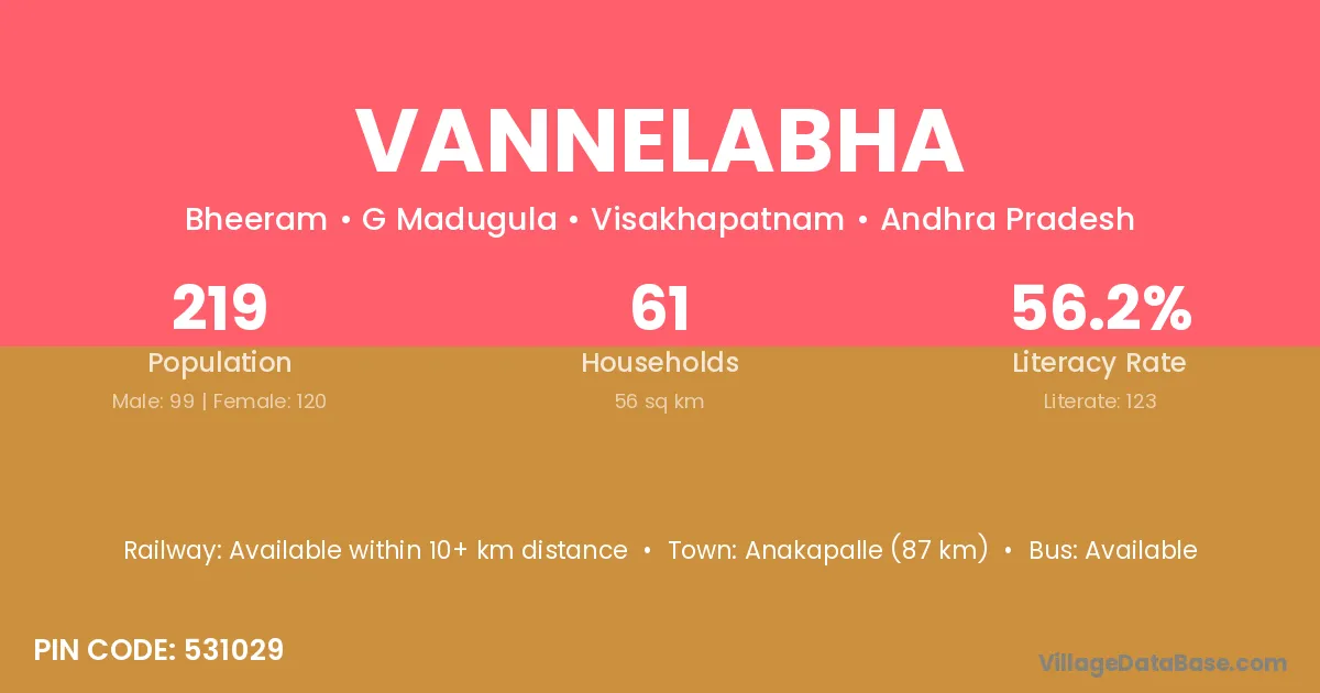 Vannelabha village has a total population of 219 people, of which 99 are males and 120 are females.