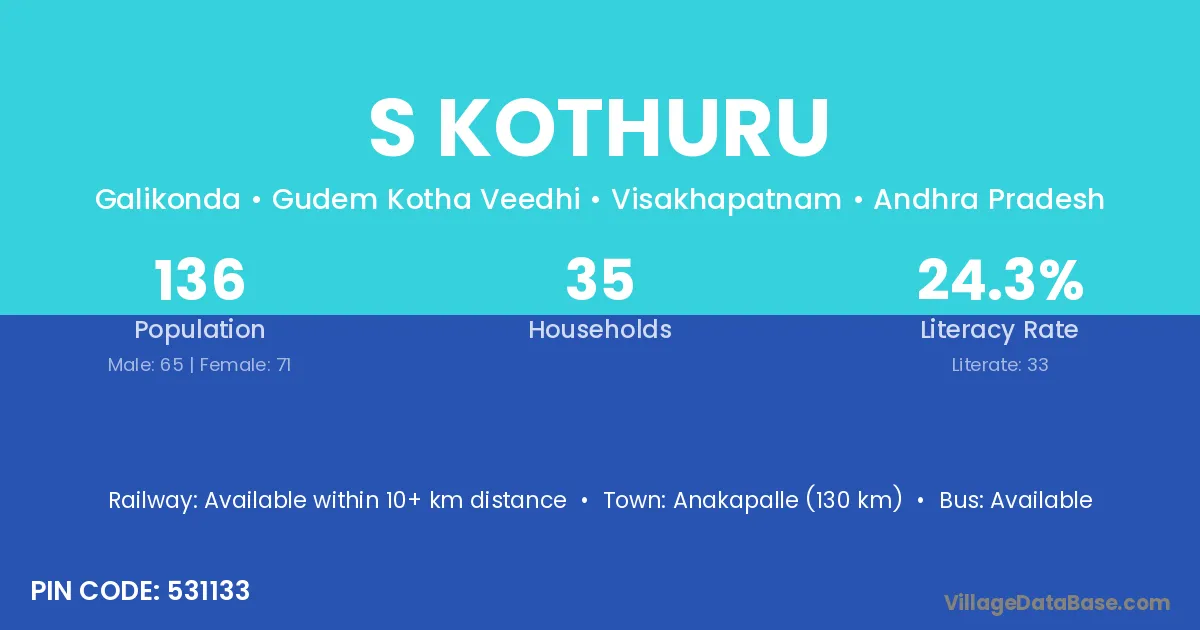 S Kothuru village has a total population of 136 people, of which 65 are males and 71 are females.