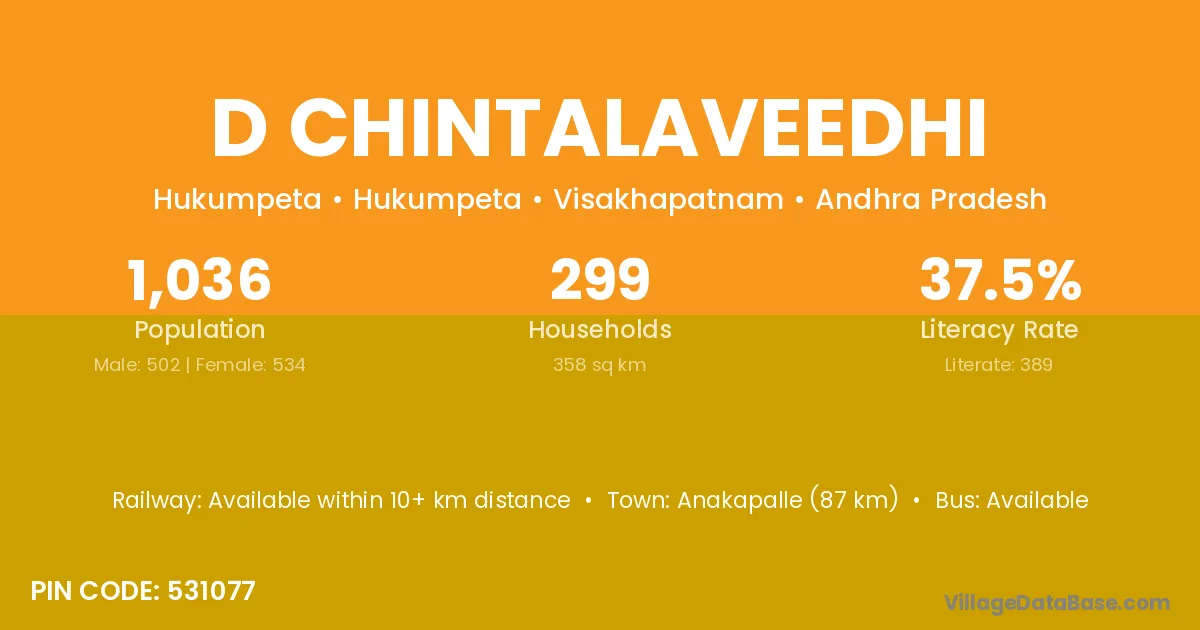 D Chintalaveedhi village has a total population of 1,036 people, of which 502 are males and 534 are females.
