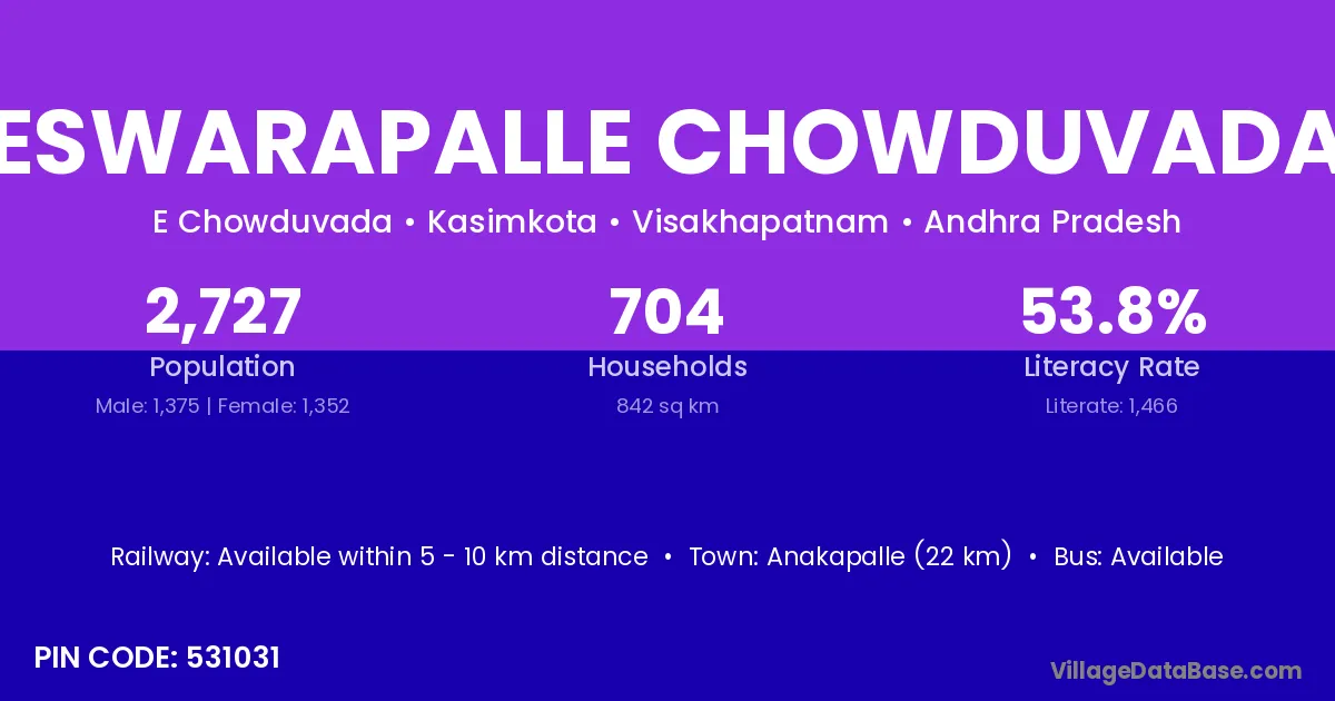 According to Census 2011 information, the village code of Eswarapalle Chowduvada village is 531031.