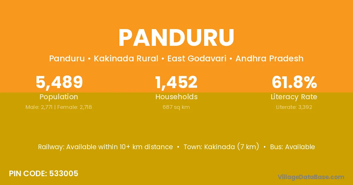 Anakapalle (51 km) is the nearest town to Panduru village for major economic activities and is located approximately 51 km away.