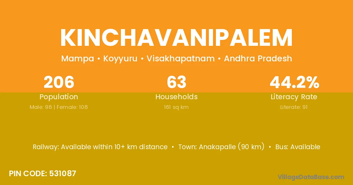 According to Census 2011 information, the village code of Kinchavanipalem village is 531087.