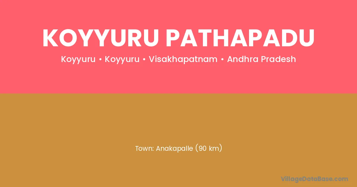 Anakapalle (90 km) is the nearest town to Koyyuru Pathapadu village for major economic activities and is located approximately 90 km away.
