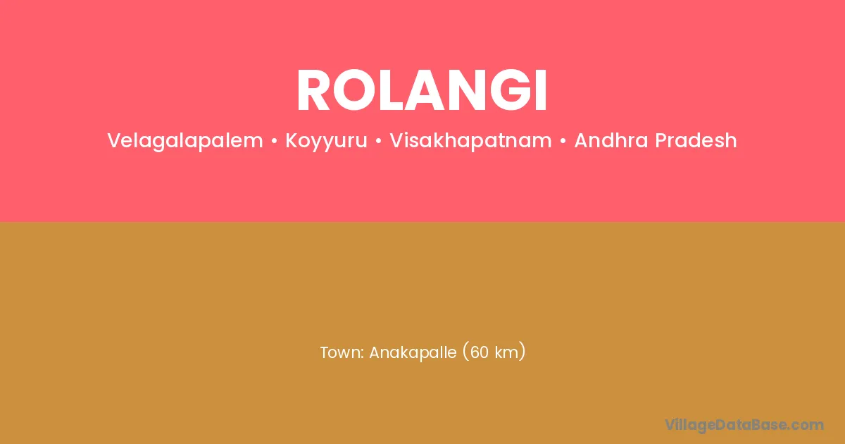 Anakapalle (60 km) is the nearest town to Rolangi village for major economic activities and is located approximately 60 km away.