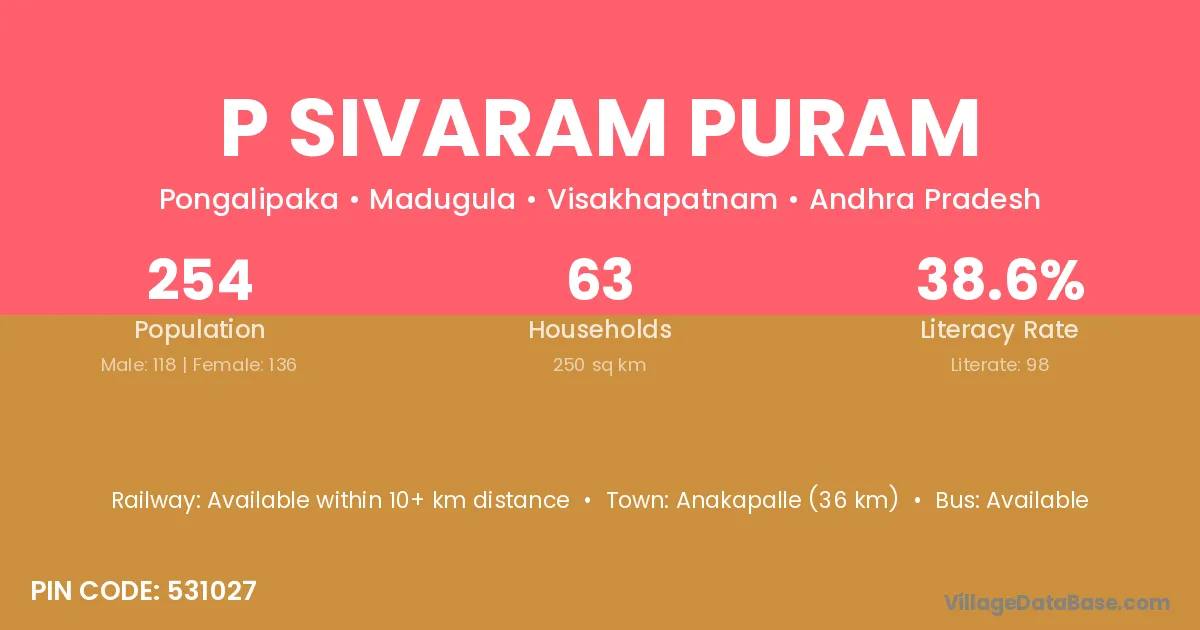 P Sivaram Puram village has a total population of 254 people, of which 118 are males and 136 are females.