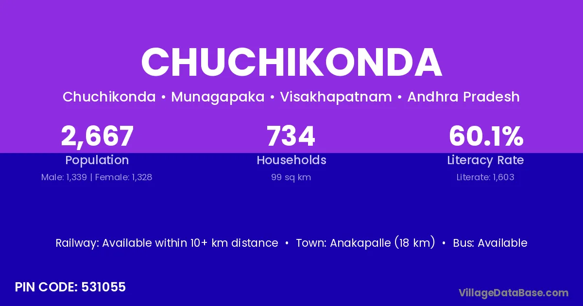 Anakapalle (18 km) is the nearest town to Chuchikonda village for major economic activities and is located approximately 18 km away.