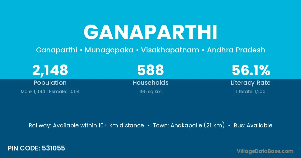 Anakapalle (21 km) is the nearest town to Ganaparthi village for major economic activities and is located approximately 21 km away.