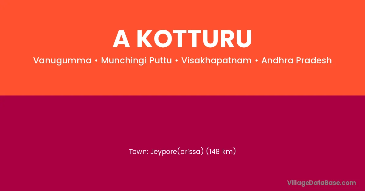 Jeypore(orissa) (148 km) is the nearest town to A Kotturu village for major economic activities and is located approximately 148 km away.