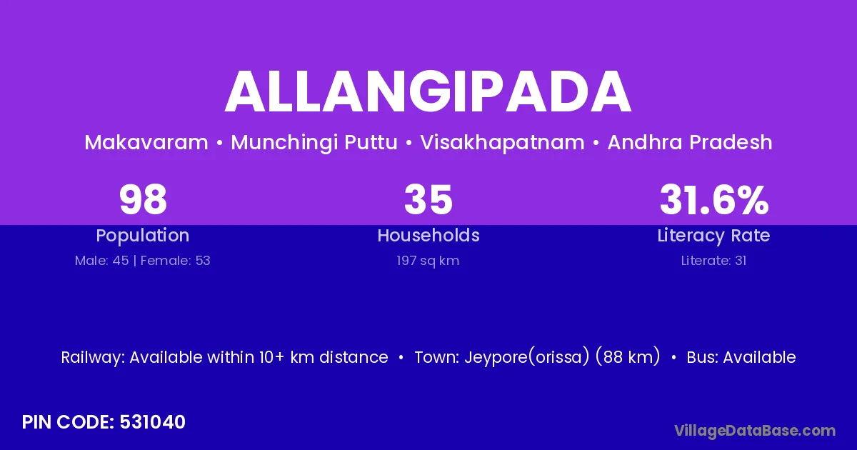 According to Census 2011 information, the village code of Allangipada village is 531040.