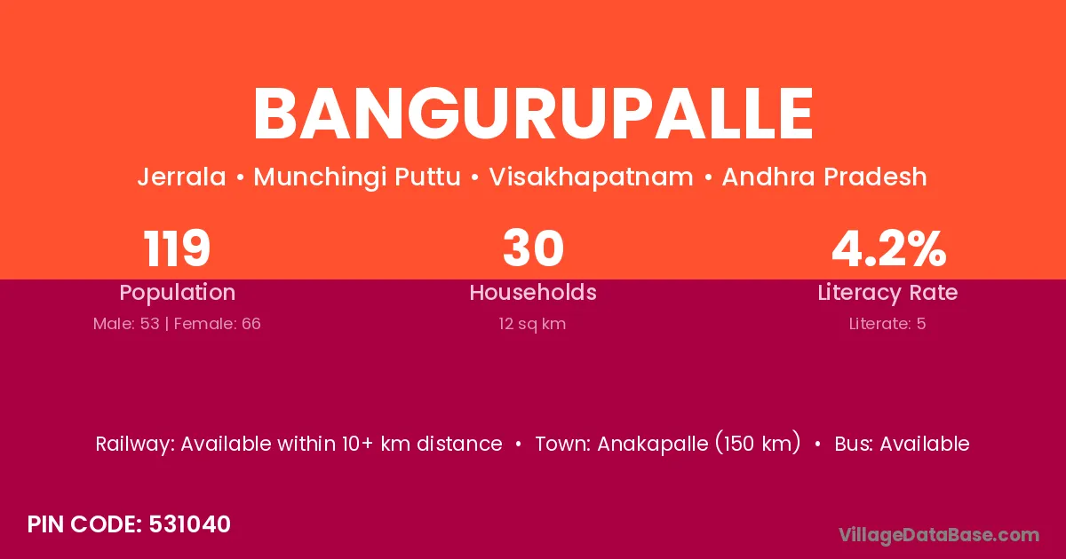 According to Census 2011 information, the village code of Bangurupalle village is 531040.
