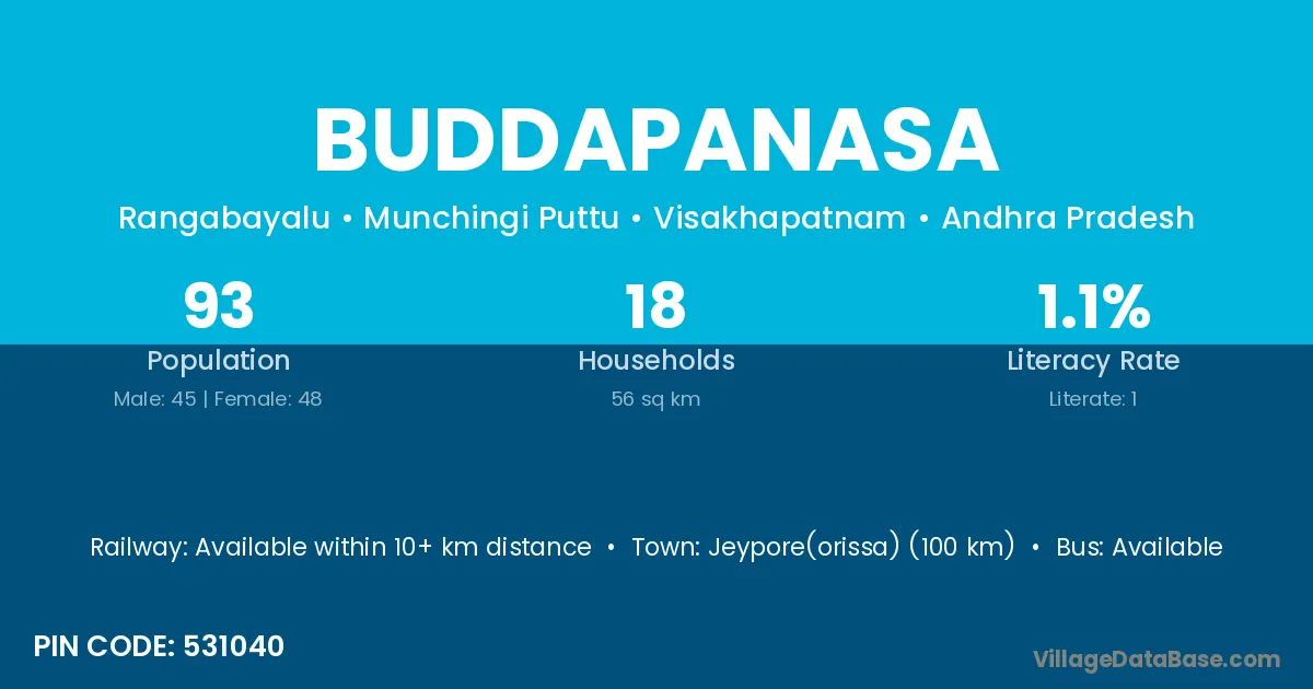 Buddapanasa village has a total population of 93 people, of which 45 are males and 48 are females.