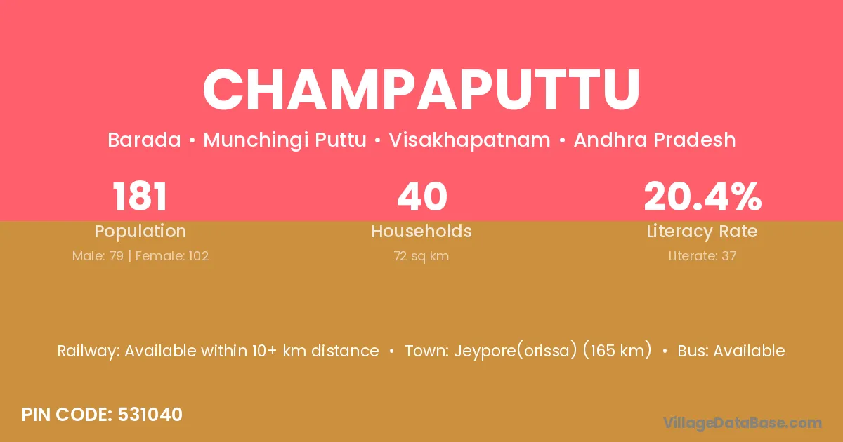 Champaputtu village has a total population of 181 people, of which 79 are males and 102 are females.