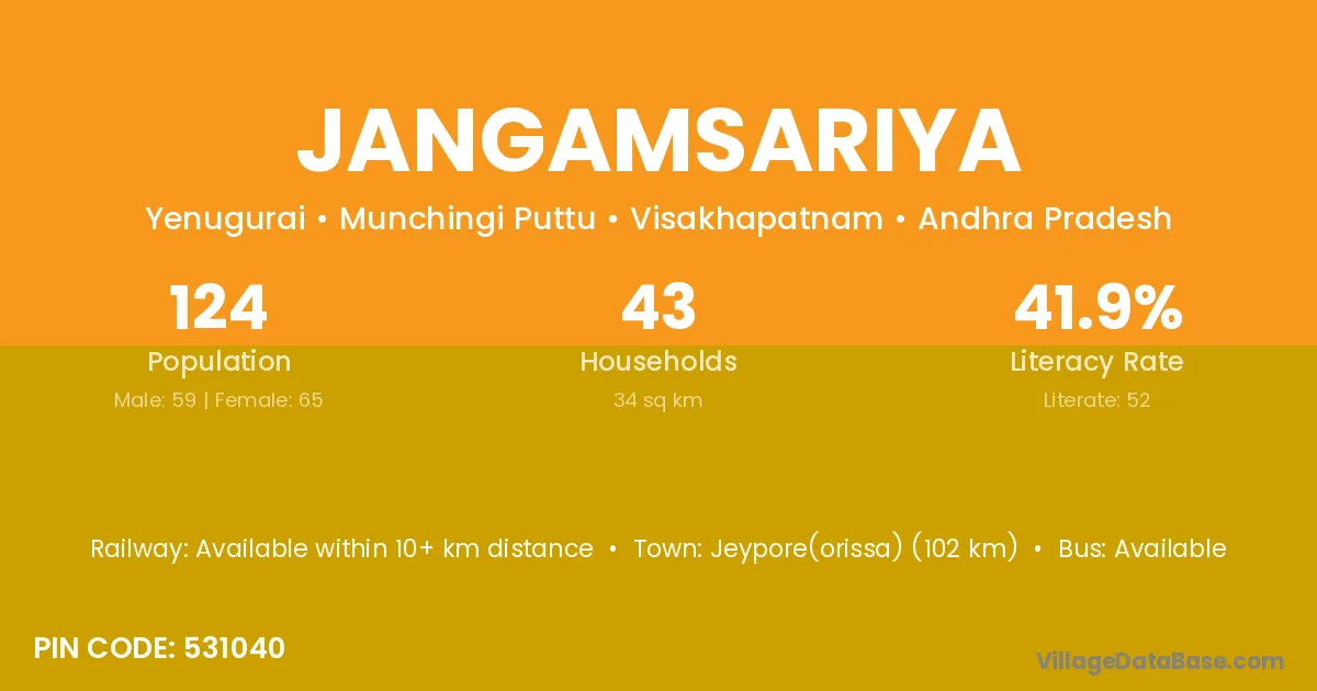 According to Census 2011 information, the village code of Jangamsariya village is 531040.
