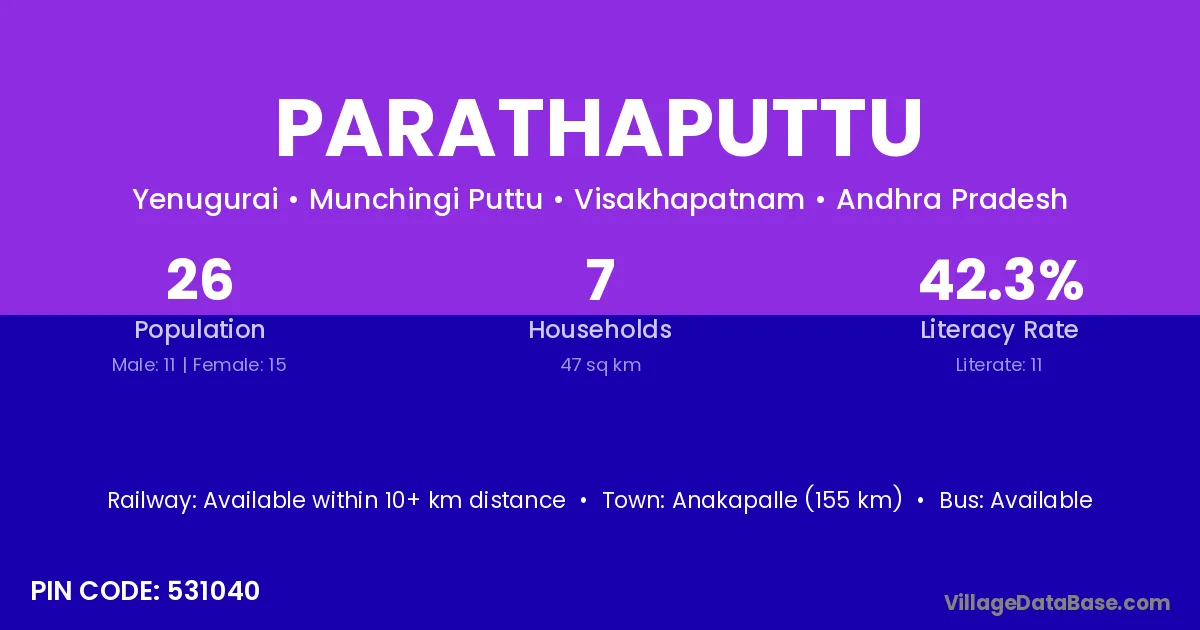 Parathaputtu village has a total population of 26 people, of which 11 are males and 15 are females.