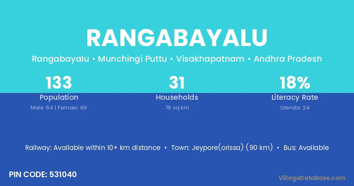 Rangabayalu village has a total population of 133 people, of which 64 are males and 69 are females.