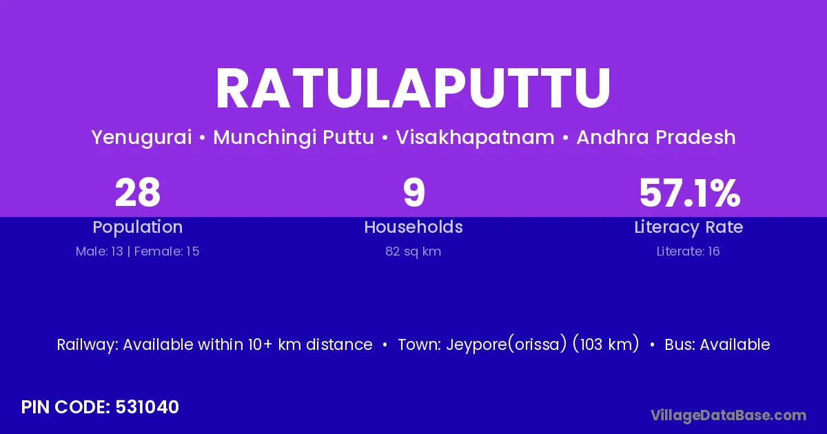 According to Census 2011 information, the village code of Ratulaputtu village is 531040.