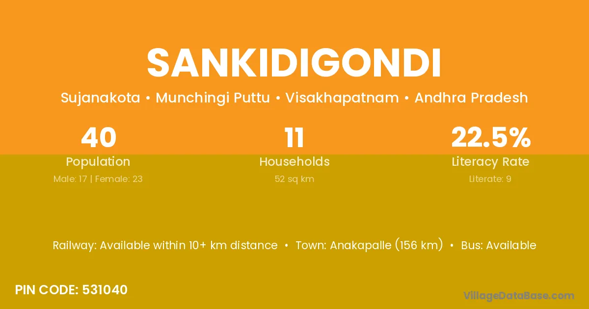 According to Census 2011 information, the village code of Sankidigondi village is 531040.