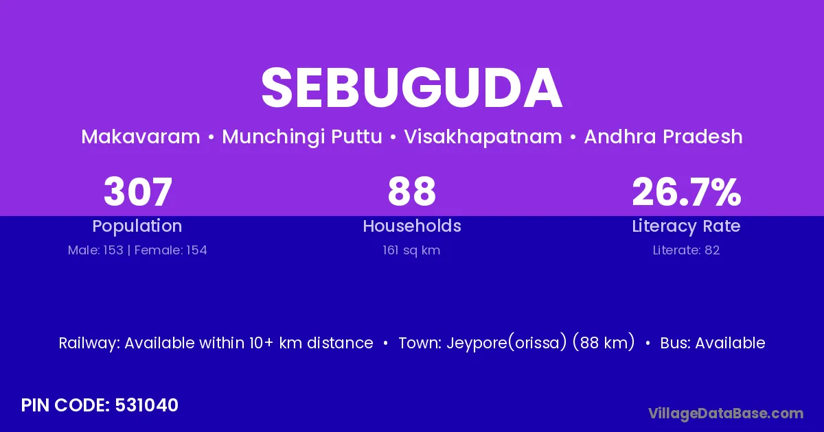 According to Census 2011 information, the village code of Sebuguda village is 531040.