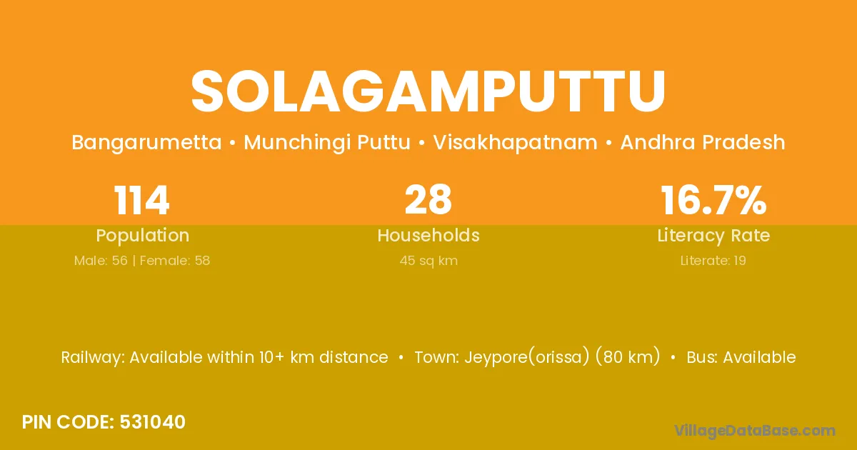 Solagamputtu village has a total population of 114 people, of which 56 are males and 58 are females.