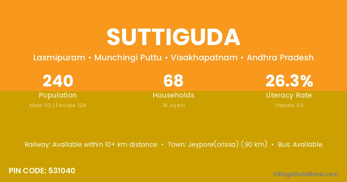 According to Census 2011 information, the village code of Suttiguda village is 531040.