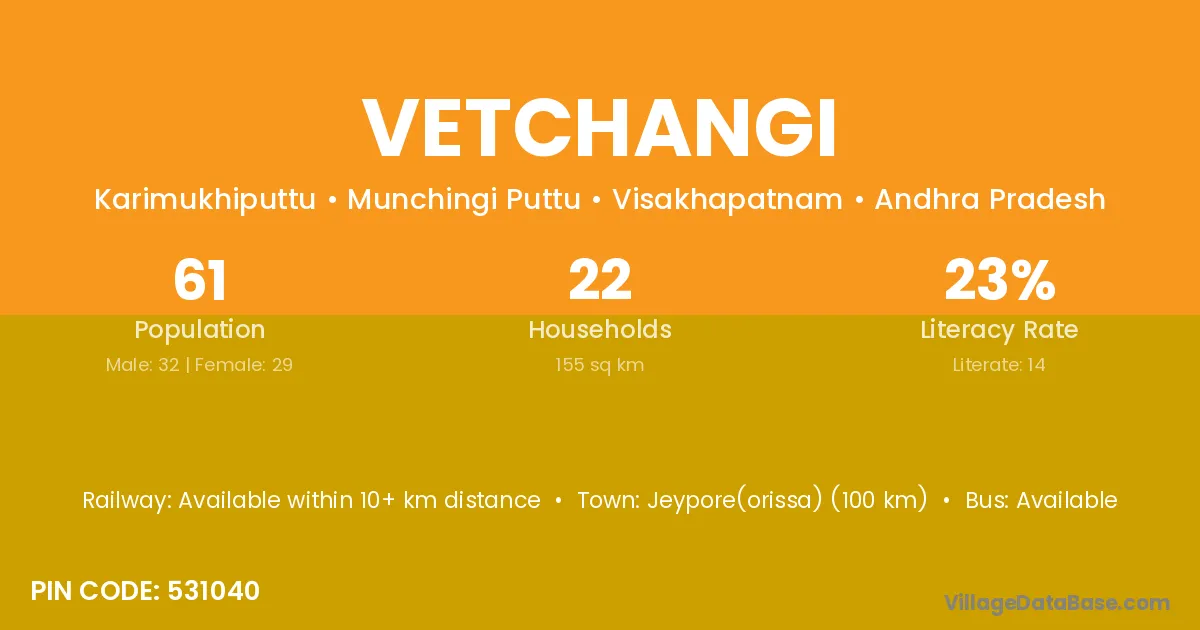 According to Census 2011 information, the village code of Vetchangi village is 531040.