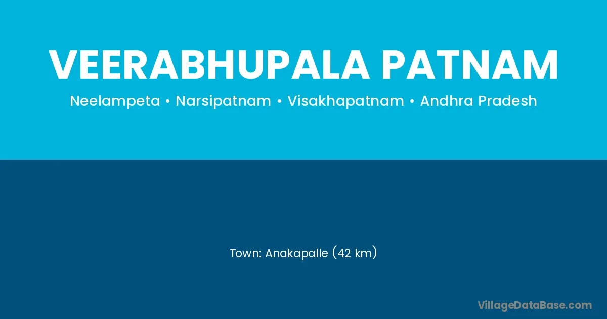 Anakapalle (42 km) is the nearest town to Veerabhupala Patnam village for major economic activities and is located approximately 42 km away.