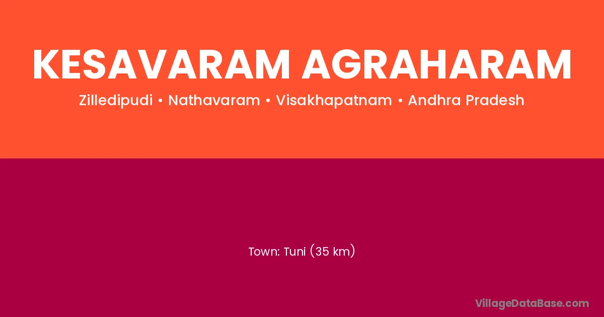 Tuni (35 km) is the nearest town to Kesavaram Agraharam village for major economic activities and is located approximately 35 km away.