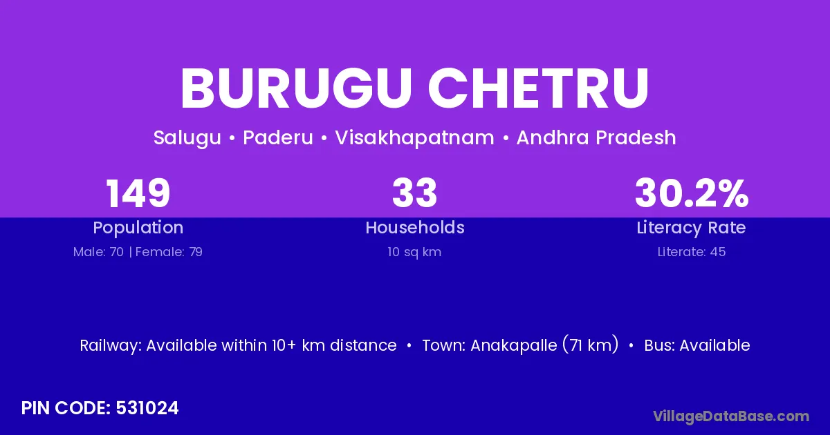 Burugu Chetru village has a total population of 149 people, of which 70 are males and 79 are females.