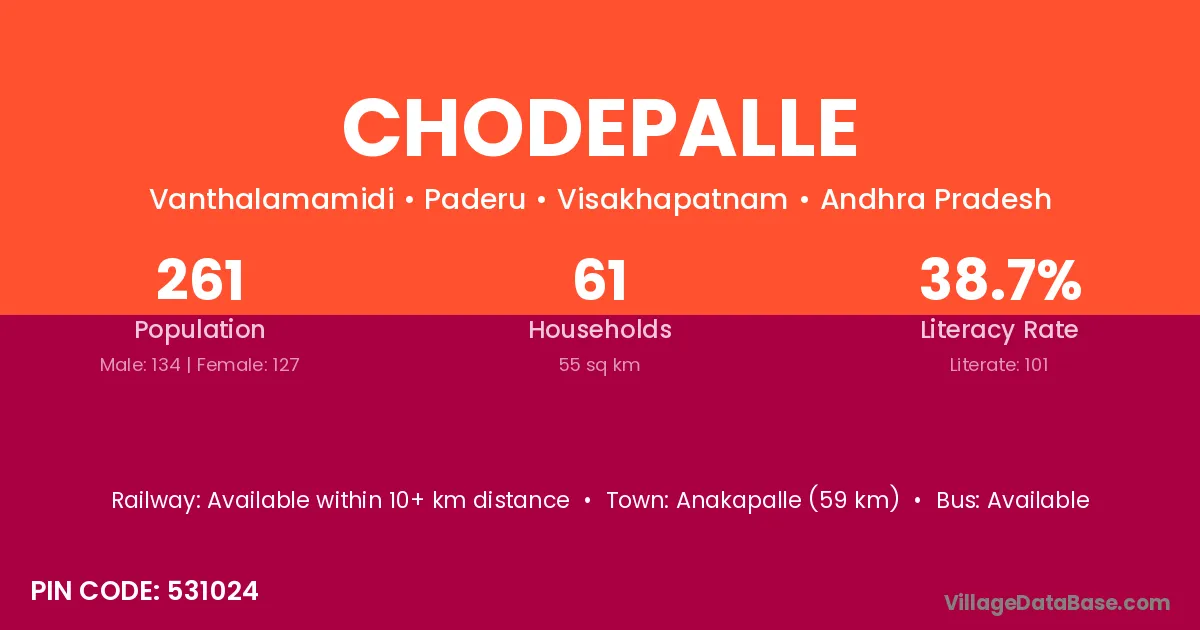 According to Census 2011 information, the village code of Chodepalle village is 531024.