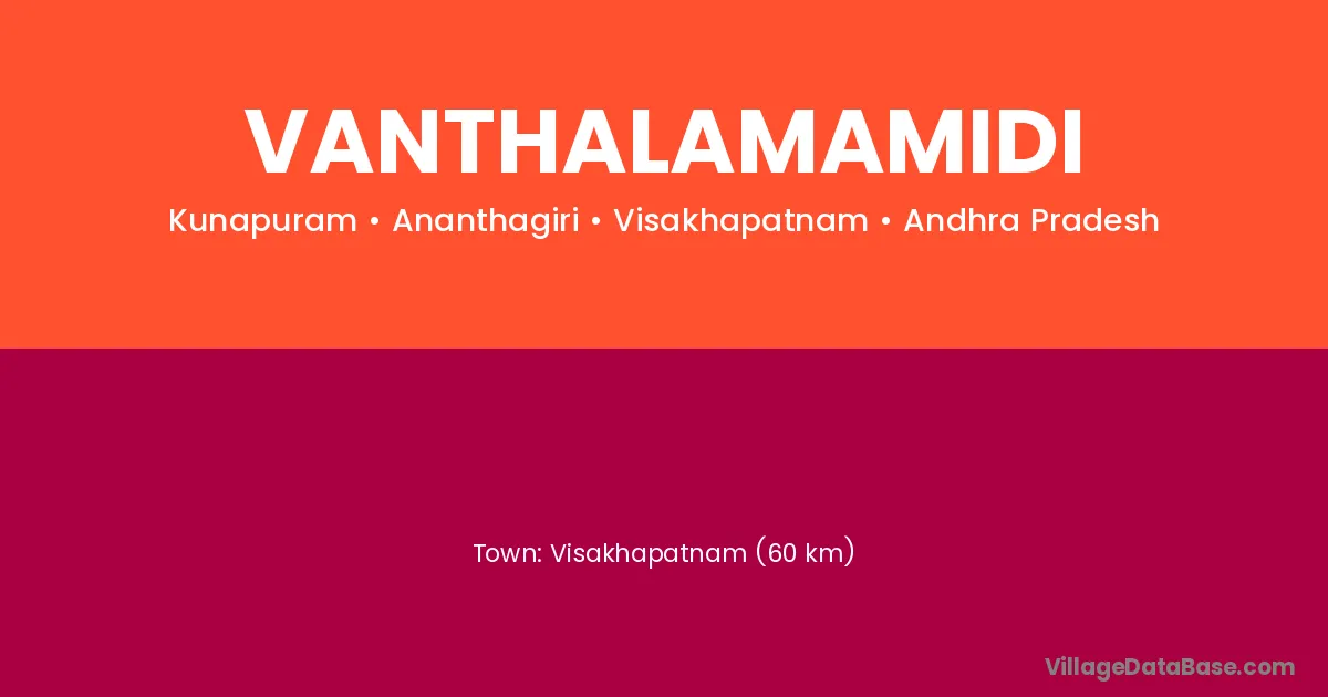 Anakapalle (56 km) is the nearest town to Vanthalamamidi village for major economic activities and is located approximately 56 km away.