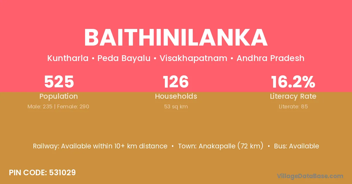 Baithinilanka village is located in the Peda Bayalu Mandal of the Visakhapatnam district in Andhra Pradesh .