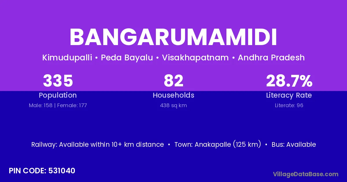 Bangarumamidi village has a total population of 335 people, of which 158 are males and 177 are females.