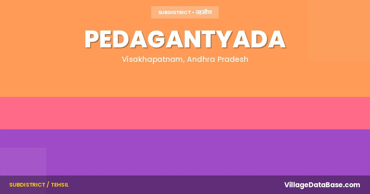 Pedagantyada is a town and Mandal in the Visakhapatnam district of the Andhra Pradesh. In India, a Mandal is a subdivision of a district responsible for the administration and revenue collection of a specific area within the district. Mandals play a crucial role in the local governance structure, contributing significantly to the development and administration of their communities.