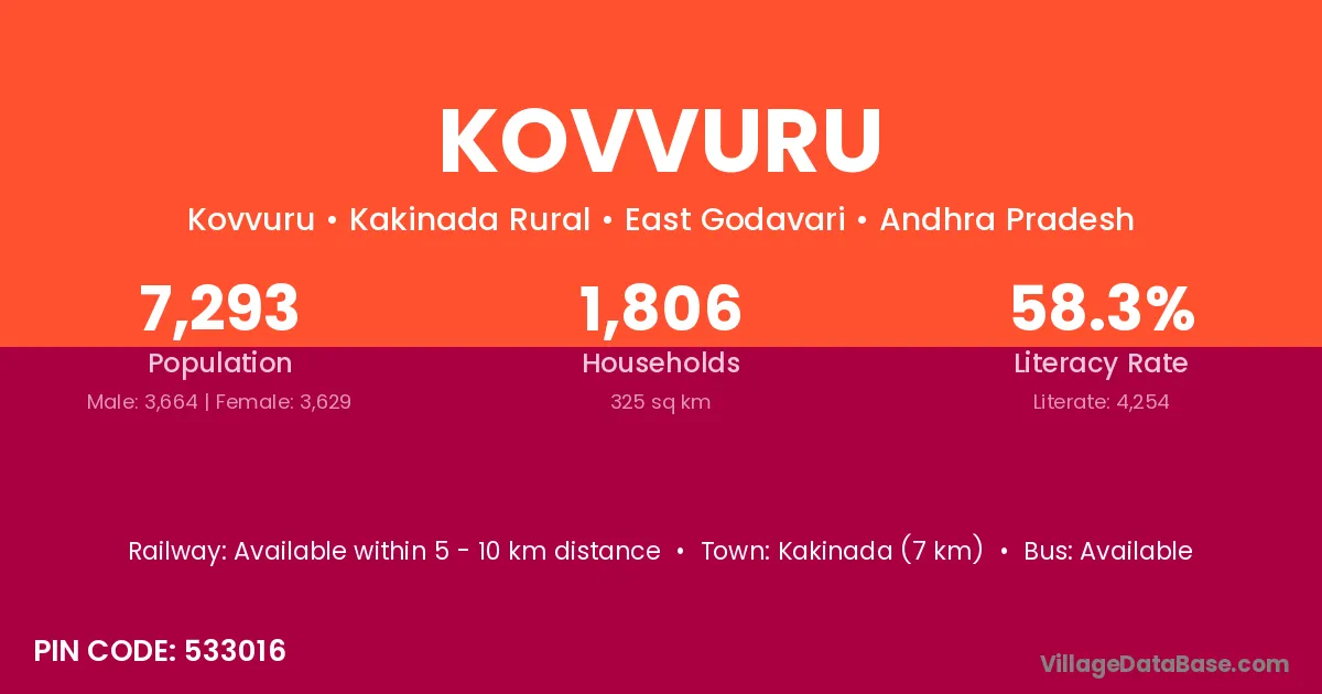 Anakapalle (48 km) is the nearest town to Kovvuru village for major economic activities and is located approximately 48 km away.