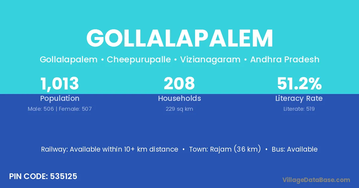 According to Census 2011 information, the village code of Gollalapalem village is 531035.