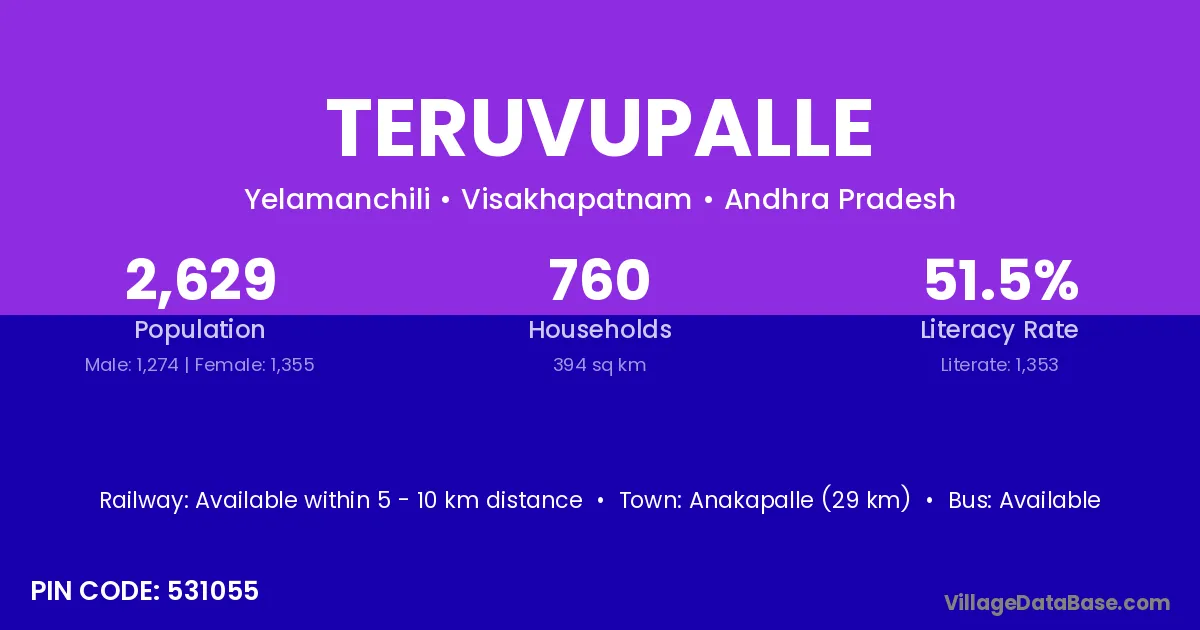 According to Census 2011 information, the village code of Teruvupalle village is 531055.