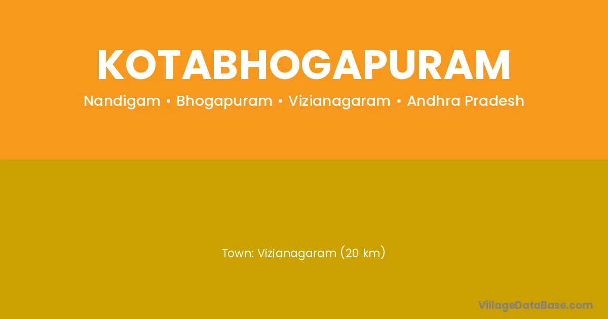 Vizianagaram (20 km) is the nearest town to Kotabhogapuram village for major economic activities and is located approximately 20 km away.