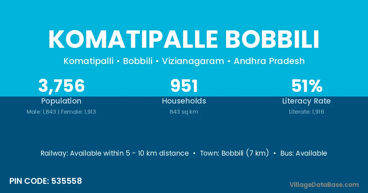 According to Census 2011 information, the village code of Komatipalle Bobbili village is 535558.