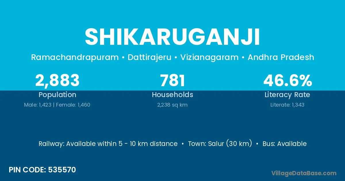 Salur (30 km) is the nearest town to Shikaruganji village for major economic activities and is located approximately 30 km away.