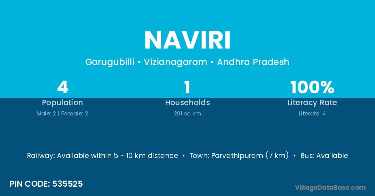 Parvathipuram (7 km) is the nearest town to Naviri village for major economic activities and is located approximately 7 km away.