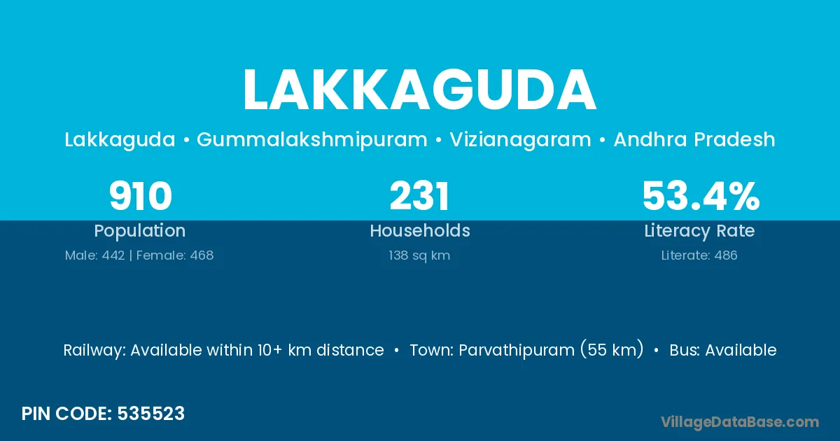 According to Census 2011 information, the village code of Lakkaguda village is 535523.