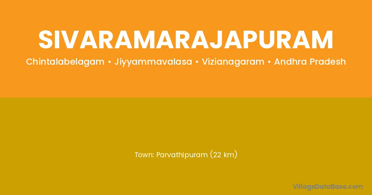 Parvathipuram (22 km) is the nearest town to Sivaramarajapuram village for major economic activities and is located approximately 22 km away.
