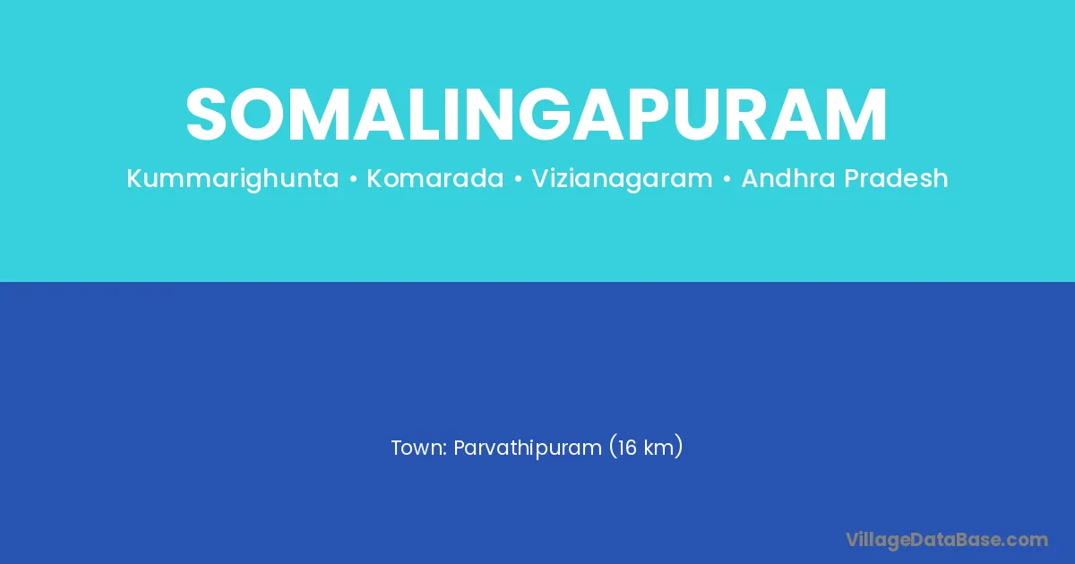 Parvathipuram (16 km) is the nearest town to Somalingapuram village for major economic activities and is located approximately 16 km away.