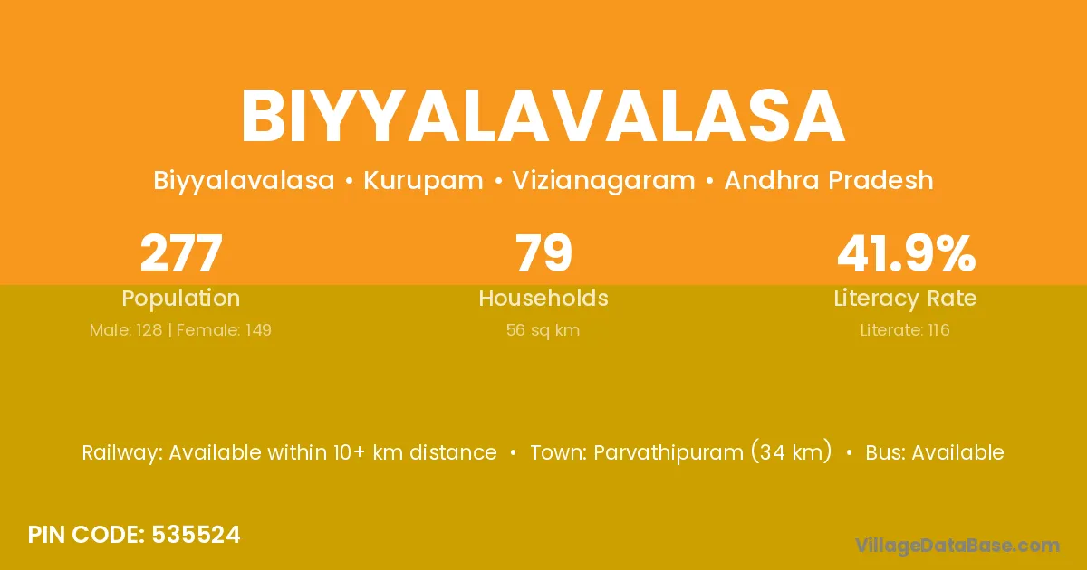 According to Census 2011 information, the village code of Biyyalavalasa village is 535524.