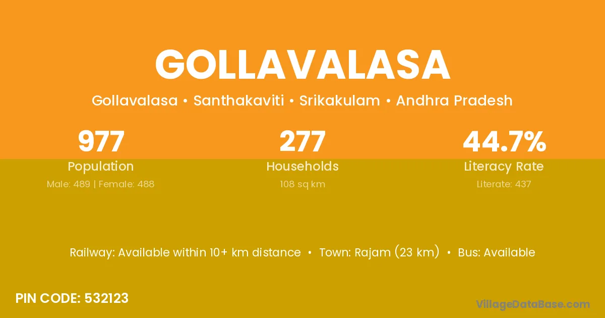 According to Census 2011 information, the village code of Gollavalasa village is 535524.
