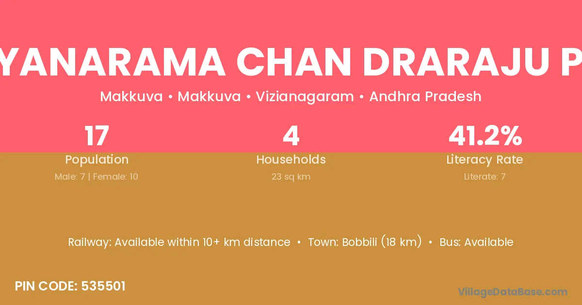 Narayanarama Chan Draraju Puram village has a total population of 17 people, of which 7 are males and 10 are females.