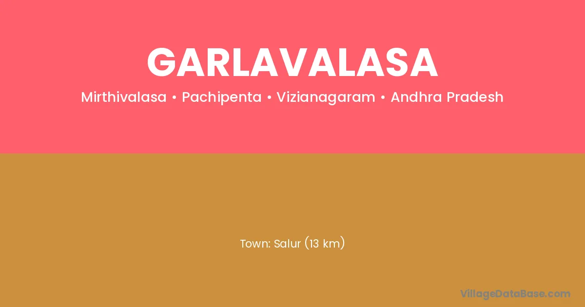 Salur (13 km) is the nearest town to Garlavalasa village for major economic activities and is located approximately 13 km away.