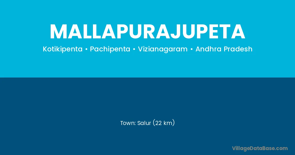 Salur (22 km) is the nearest town to Mallapurajupeta village for major economic activities and is located approximately 22 km away.