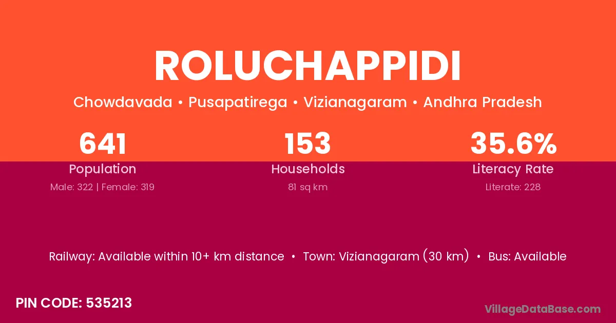 Roluchappidi village has a total population of 641 people, of which 322 are males and 319 are females.