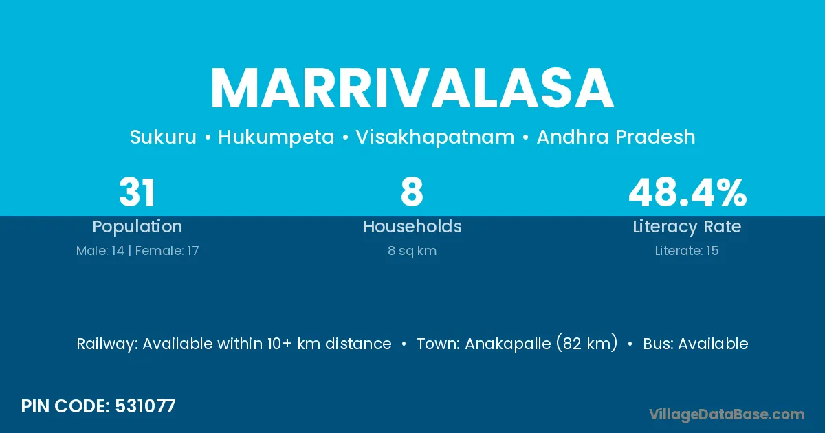 The literacy rate of Marrivalasa village is 45.42%. Male literacy stands at 52.74% and female literacy at 37.68%.